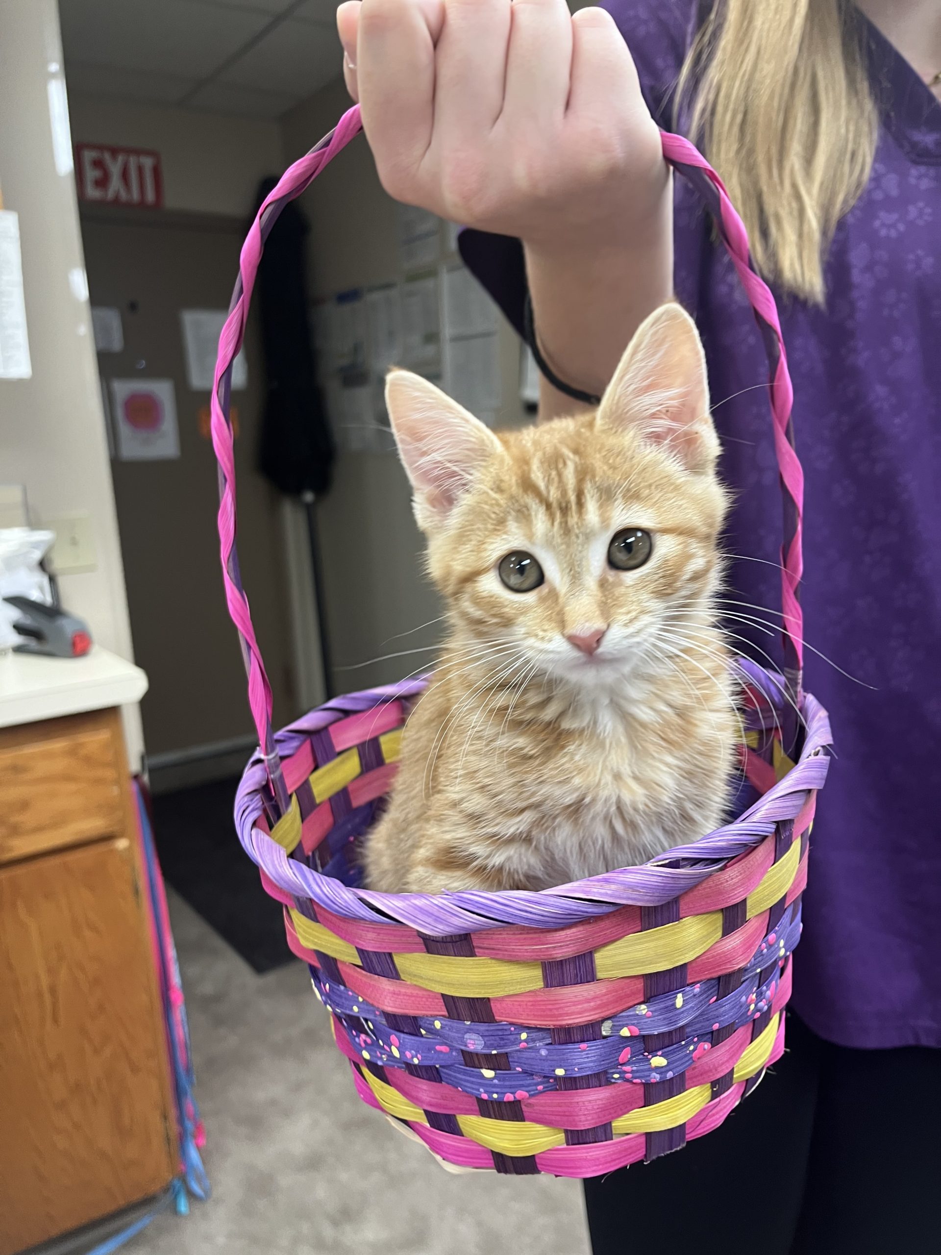 Introducing the newest member of Dr. Megan McElroy’s family: Fanta! She was rescued here in Spokane, and has since been adopted into Dr. Megan’s home. Fanta is a feisty girl who loves to play (her favorite toy being the clinic pens) and taking naps in her basket.