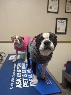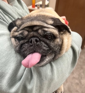 Now talk about a character, Deedle will steal your heart from the moment you meet him. He loves to shake for cookies, and obviously has the head tilt down to a tee. He is an English Bulldog, with a beautiful brindle coat. Deedle loves to sneak into the back treatment area and beg for cookies.