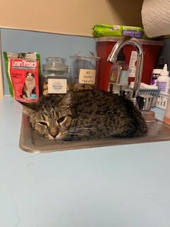 Our buddy Nitro has loved curling up in a sink since he was little! Every time he comes in for a check up- this is where you’ll find him.