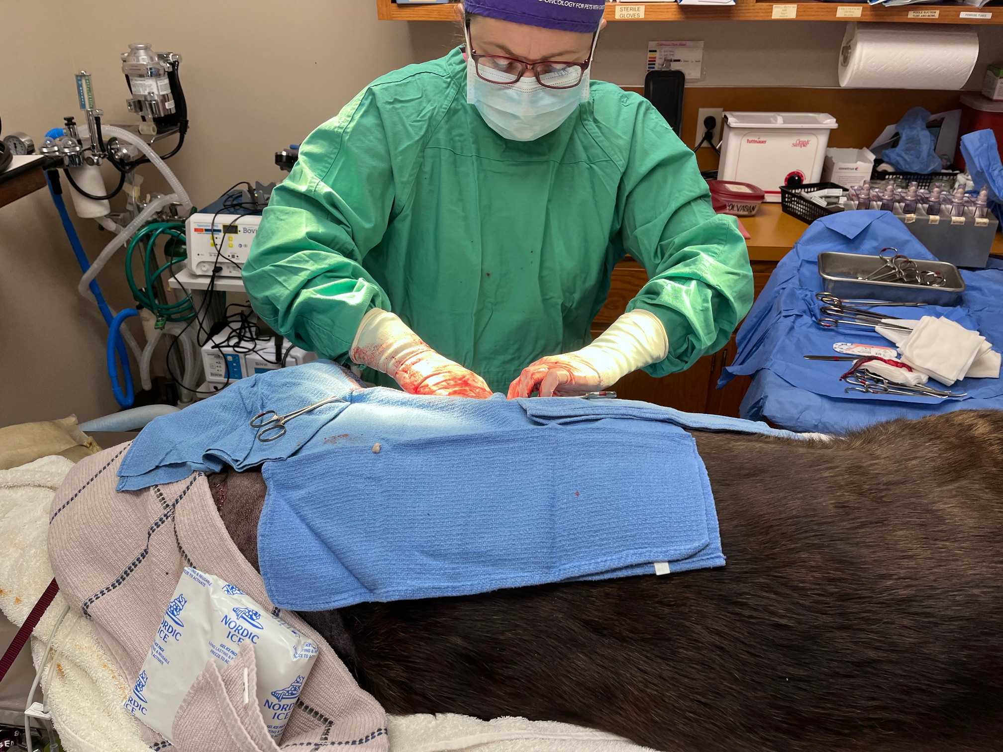 (Pictured above is Dr. Megan McElroy performing a mass removal surgery.)